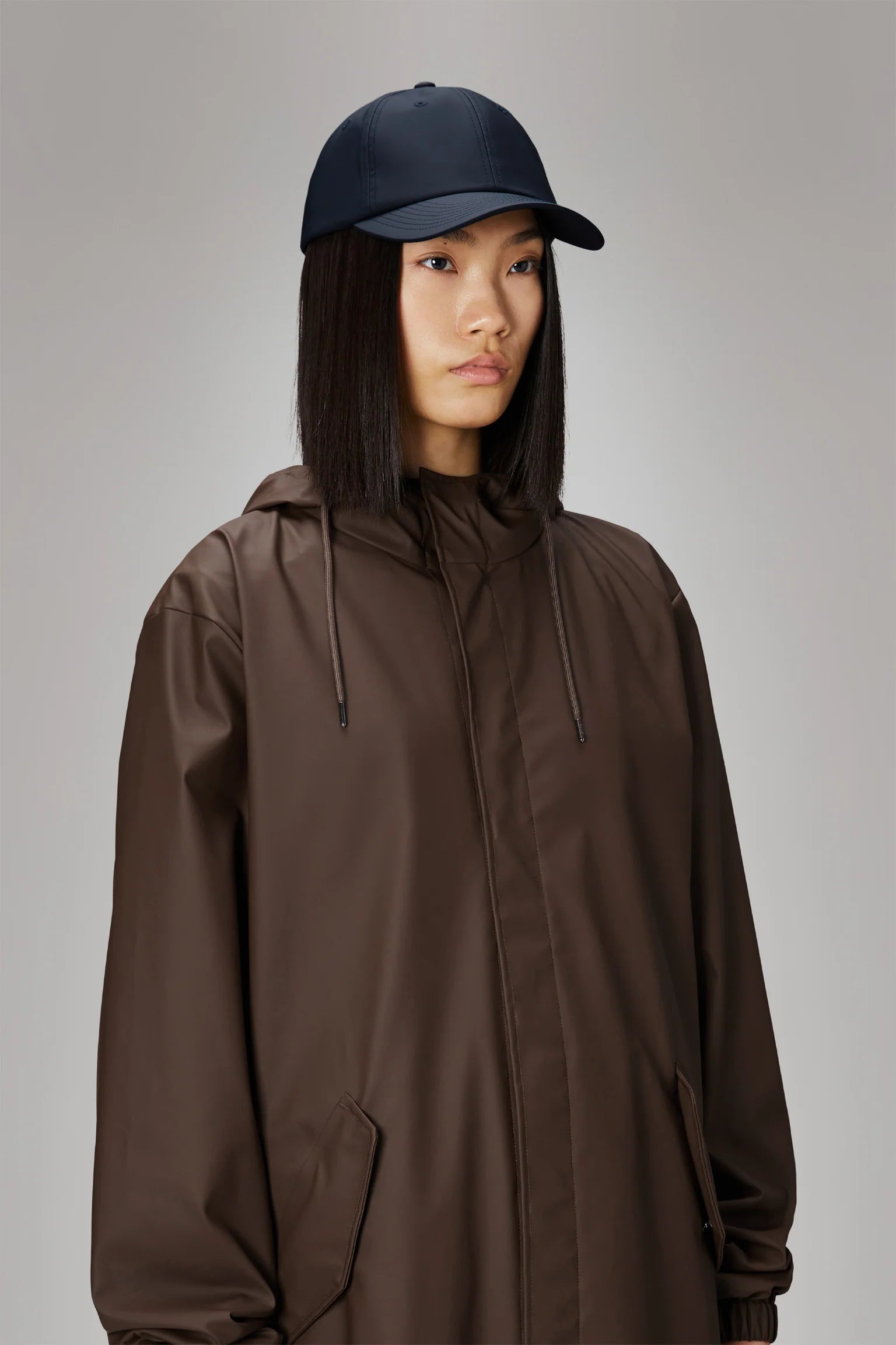 Cap is cut in Rains’ signature PU fabric, engineered to be waterproof with a smooth and soft feel.