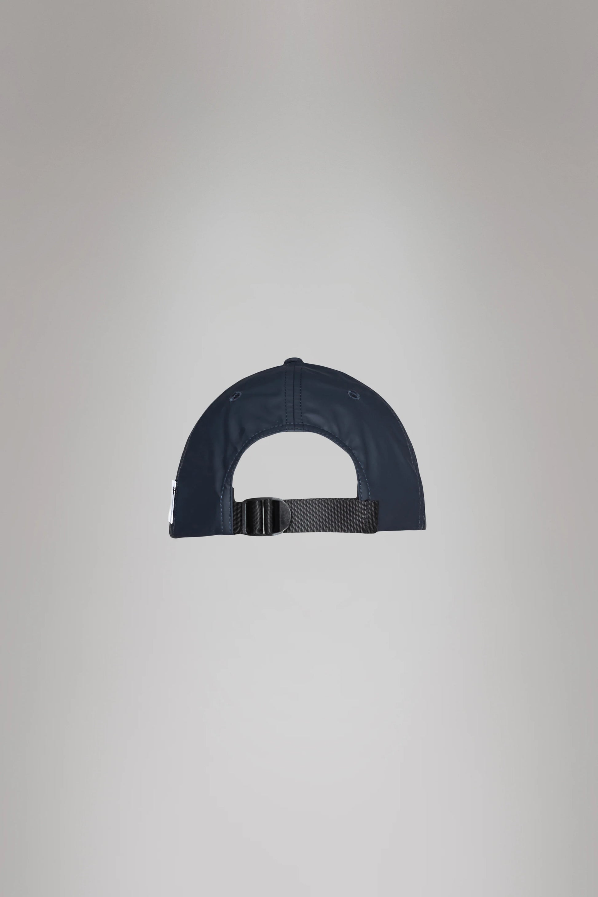 Cap is Rains’ take on the classic baseball cap with curved brim. The six-paneled design is held in place by a back-mounted adjustable webbing strap and buckle. The design is finished with ventilation holes for comfort.
