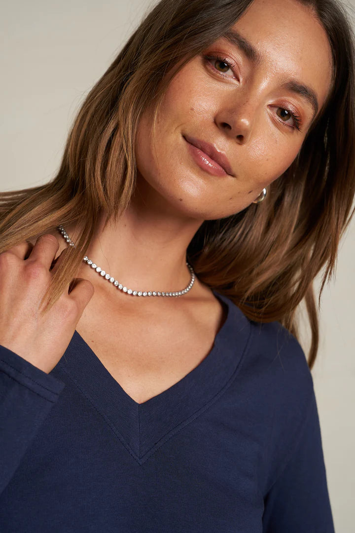 tuckable and cozy for underneath your sweaters, this slightly fitted tee is the perfect pick for the season.