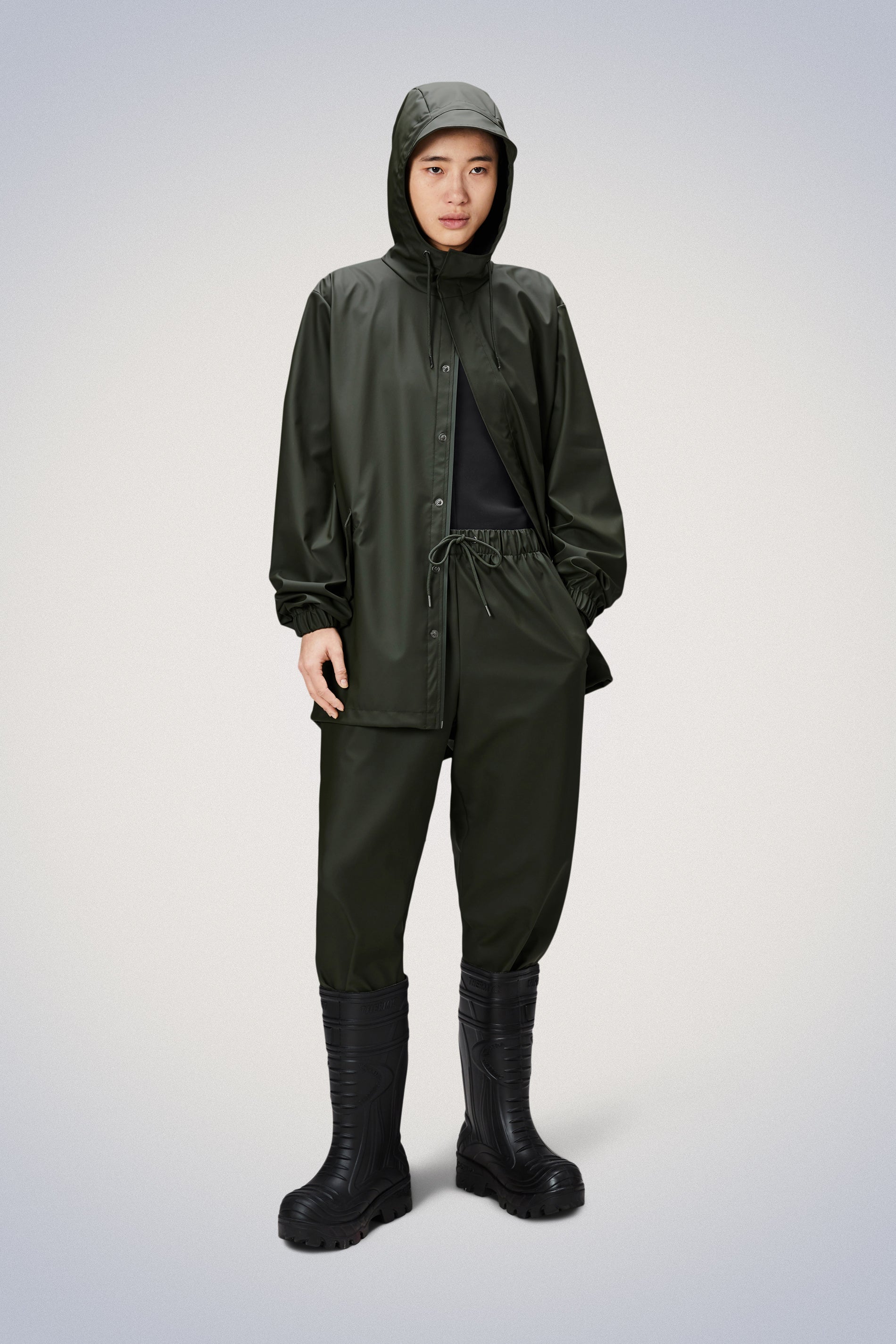 This waterproof jacket is cut from Rains’ signature PU fabric and features ultrasonically welded seams. The finish is lightweight with a soft feel and elegant drape.