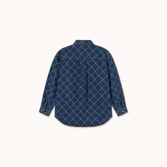 The Flowers Grid Denim Shirt is a classic cut with a twist, featuring laser-printed grid stripes across deep indigo denim. Designed with a front button opening in contrasting silver, a back yoke, and buttoned sleeves, it’s polished enough to stand alone yet easy to layer. A versatile piece that brings contemporary edge to a timeless staple.