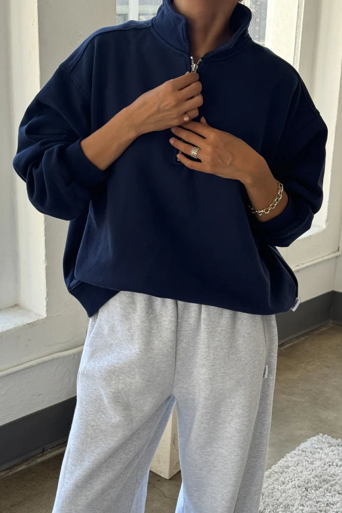 A vintage-inspired classic, The Noah Top offers a perfect combination of a modern retro feel, made to layer. Crafted of 100% cotton, it features a super soft interior to keep you warm, yet still breathable. A half-zip mock neck gives off that vintage look and maintains a boxy fit, while side seam pockets add the perfect touch of convenience.