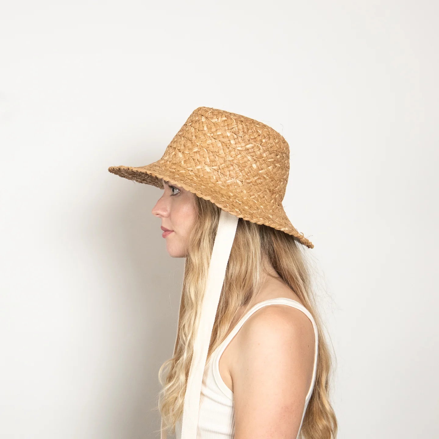 100% Raffia mixed color bucket with cotton canvas stampede strap