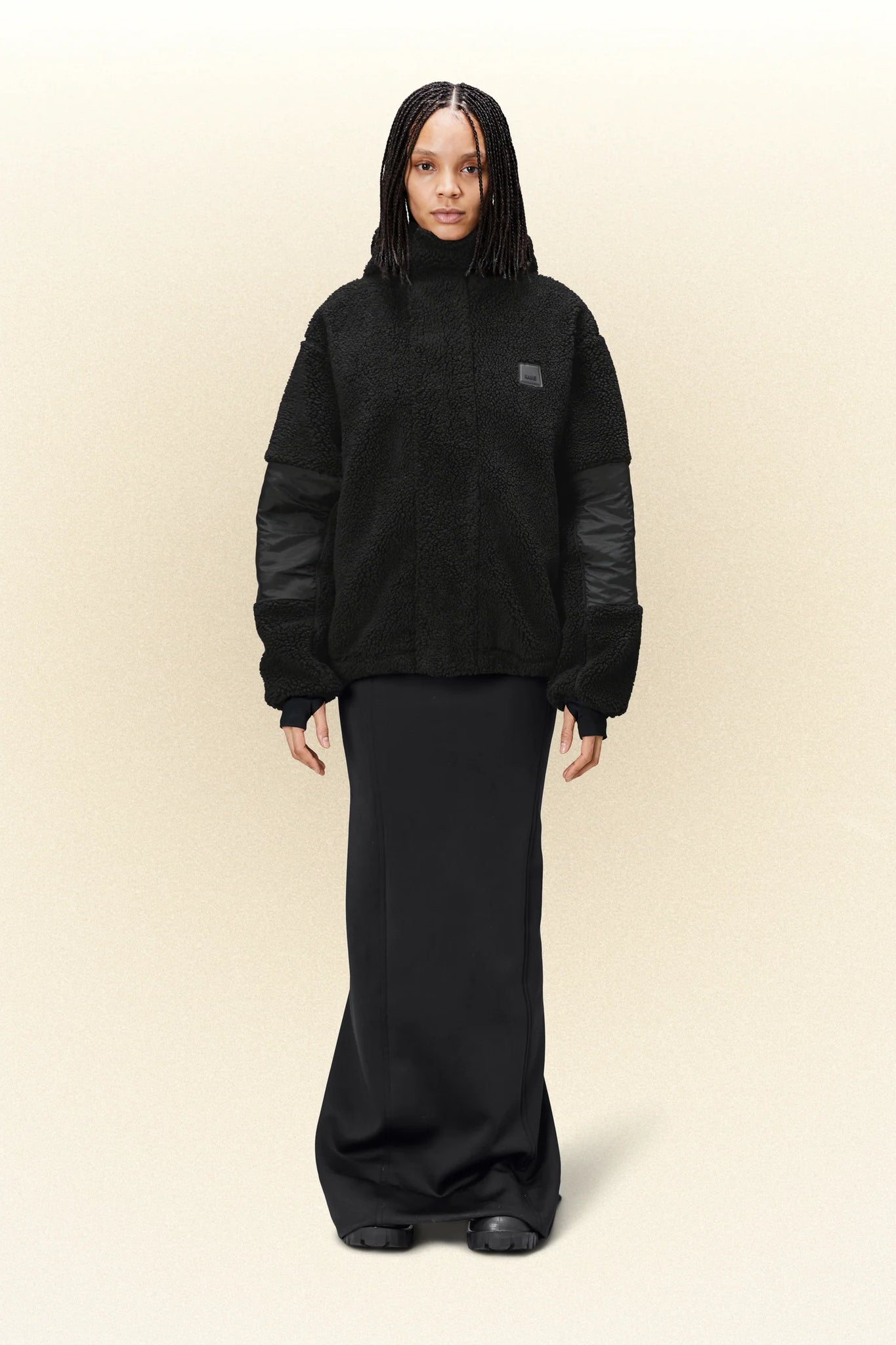 Kofu Fleece Hoodie is characterized by its high lined hood, woven fabric blocked back yoke and elbow patches, plus stitch details. The design is finished with side seam pockets, zip closure, jersey storm cuffs with thumbholes, and elastic string adjustable hem.