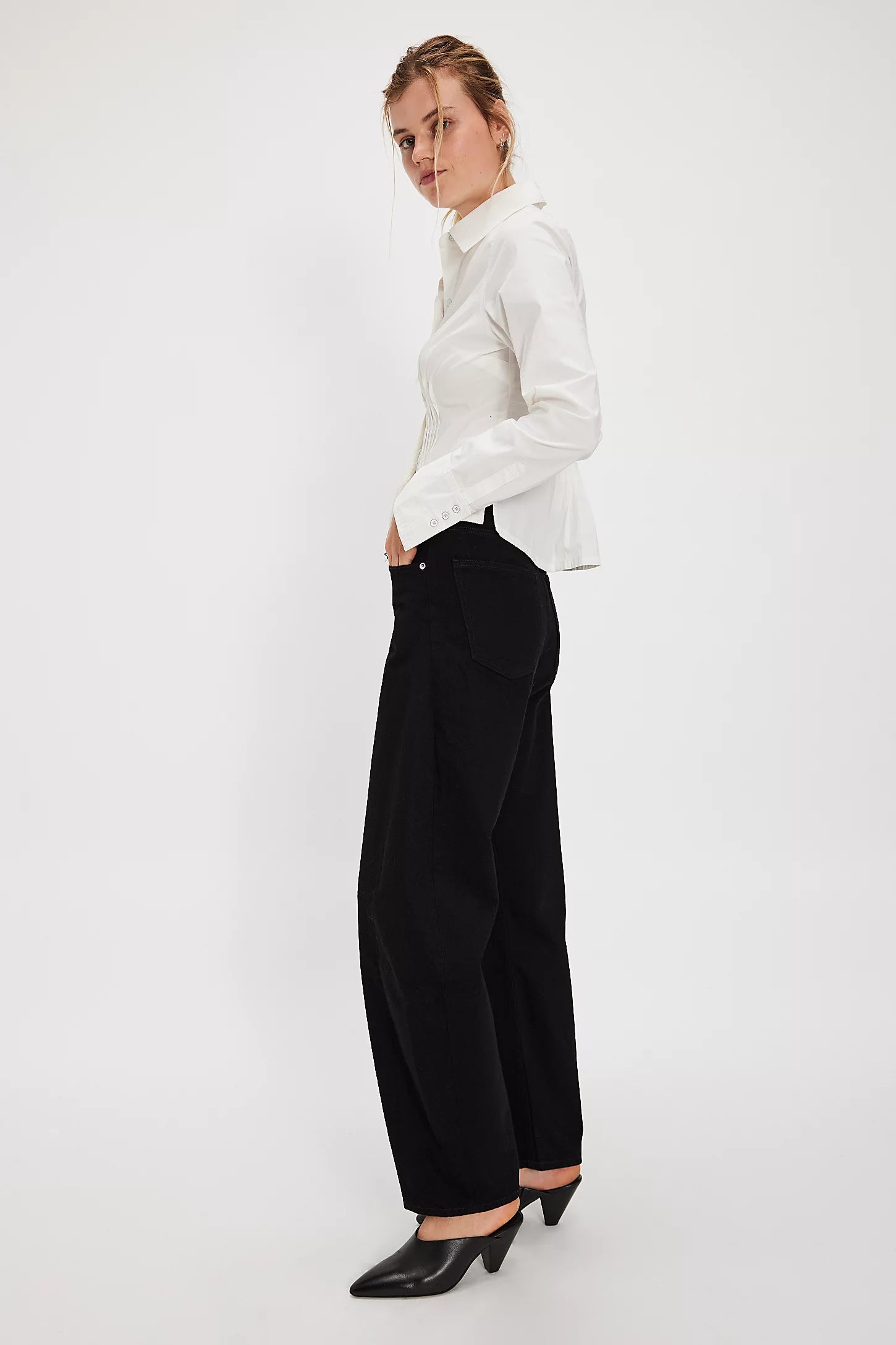Structured to perfection. The Luna is designed with a waist-accentuating high-rise and a full-length relaxed leg. The pieced insert detailing at the outseam creates a bowed leg silhouette, ideal for taking your everyday denim to the next level.