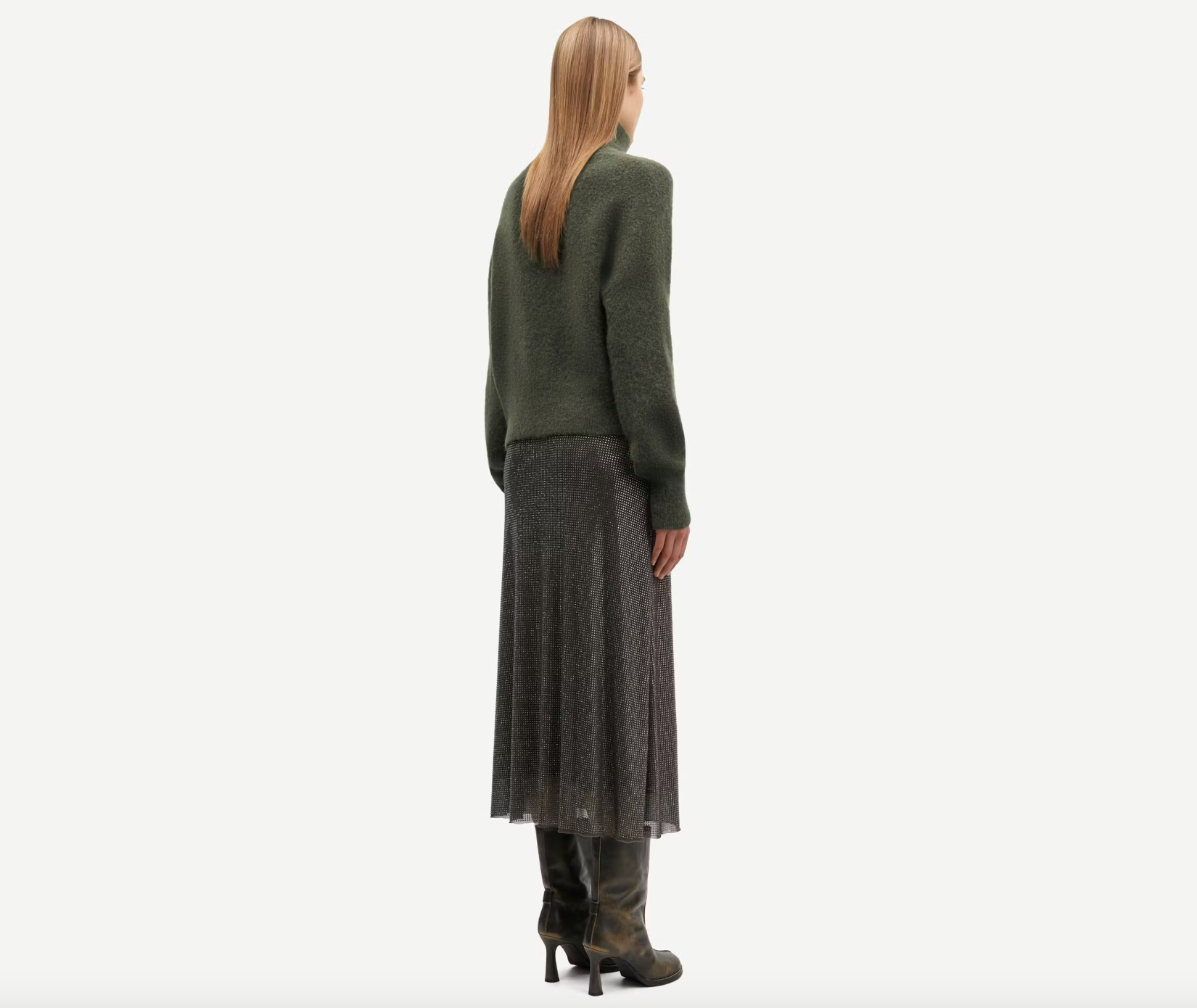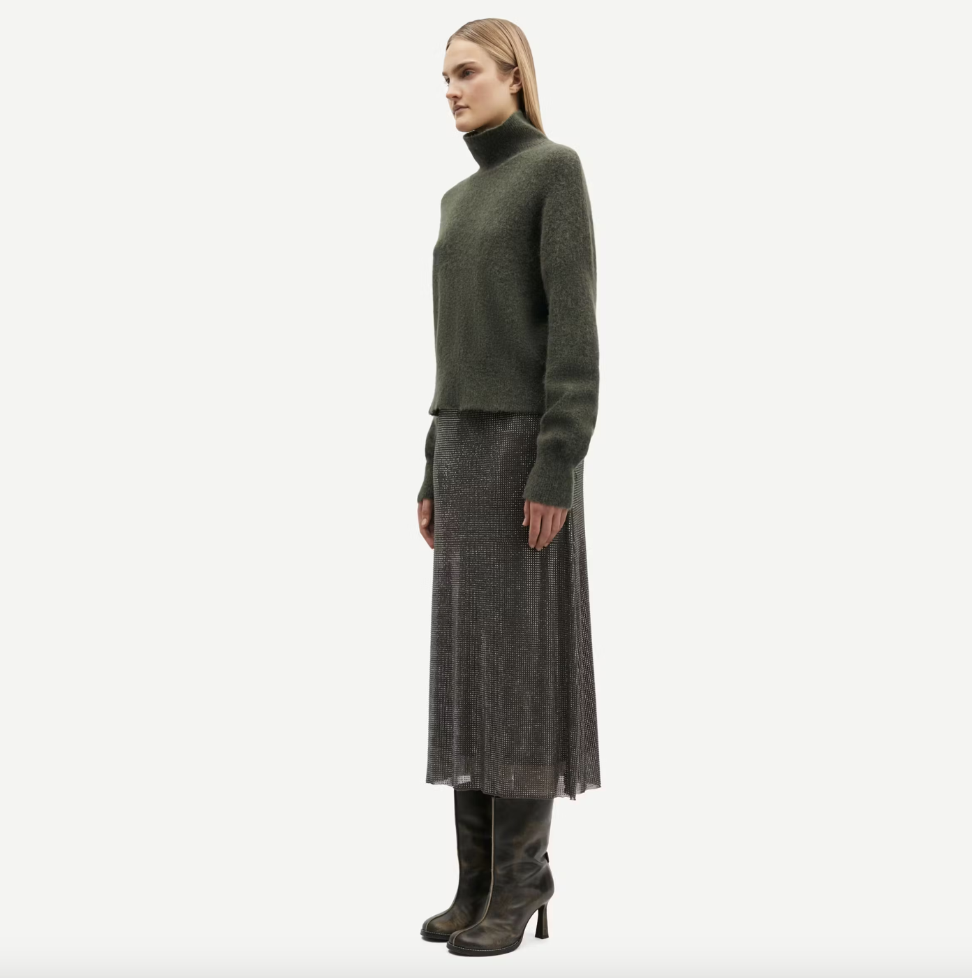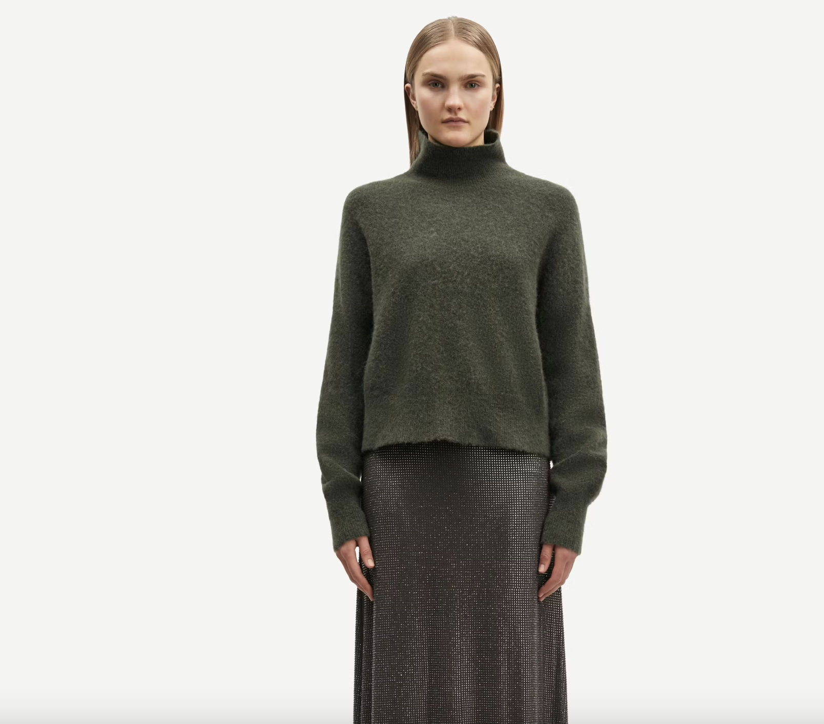 Turtleneck sweater with a regular fit and dropped shoulders. Rib-knitted collar, cuffs, and hem. Fully fashioned seams. Main material made from a blend with wool, alpaca wool, and recycled polyester. This product is RWS certified. The RWS describes and certifies animal welfare and land management practices in wool fibre production and tracks the certified material from farm to final product.