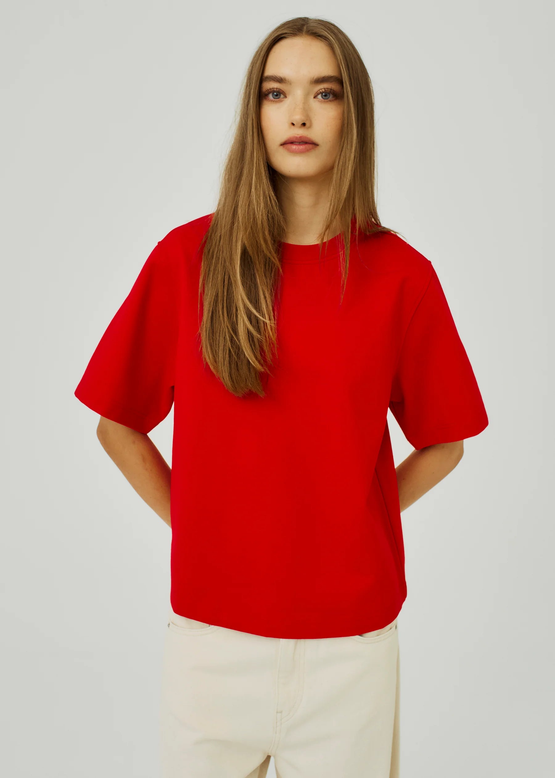 Orah tee offers a clean, minimalist design with a relaxed fit for all-day comfort. The soft, high-quality fabric ensures breathability and ease of movement, making it perfect for casual wear or layering under jackets and cardigans. Its timeless silhouette pairs effortlessly with jeans, shorts, or skirts for a versatile wardrobe essential.