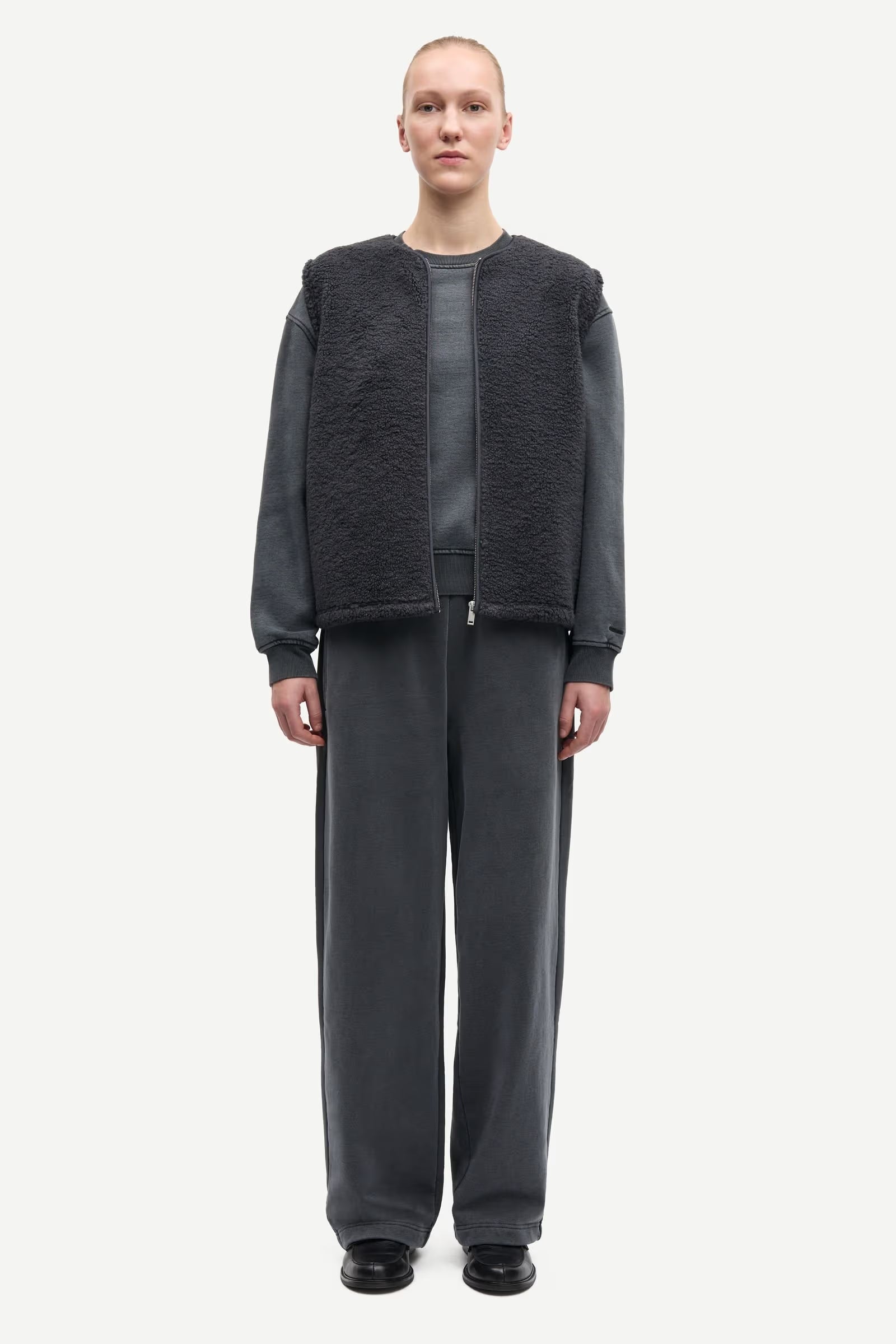 Fleece vest with a loose fit. Zipper closure on the front. Side slit pockets on the front. Main material made from 100% recycled polyester. This product is GRS certified. Each stage of the supply chain has met strict social, environmental, and chemical requirements.