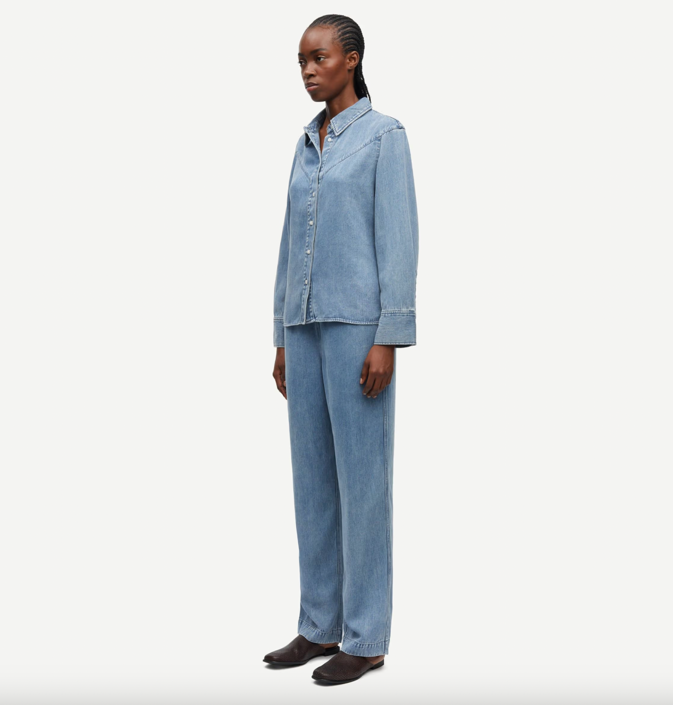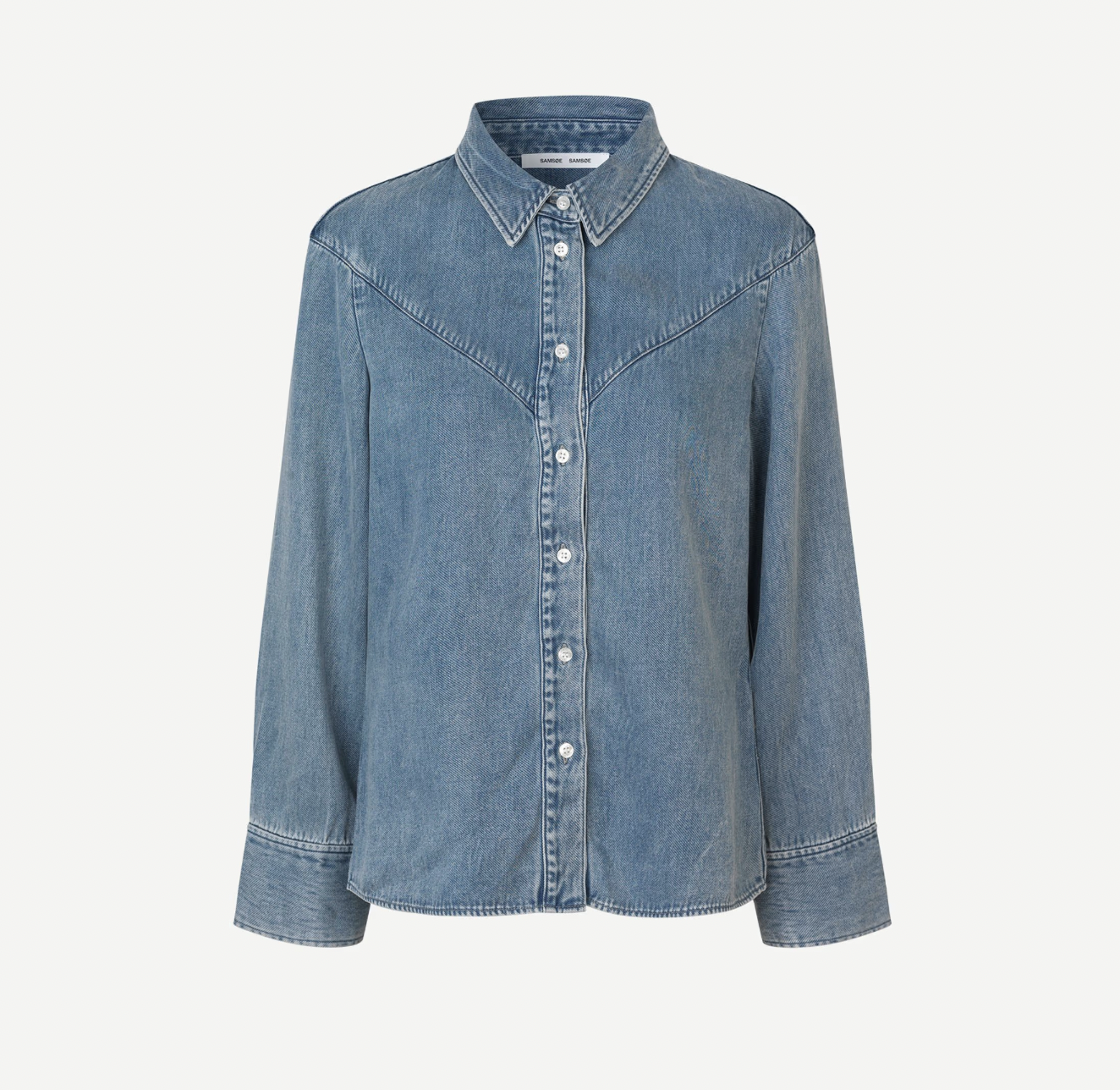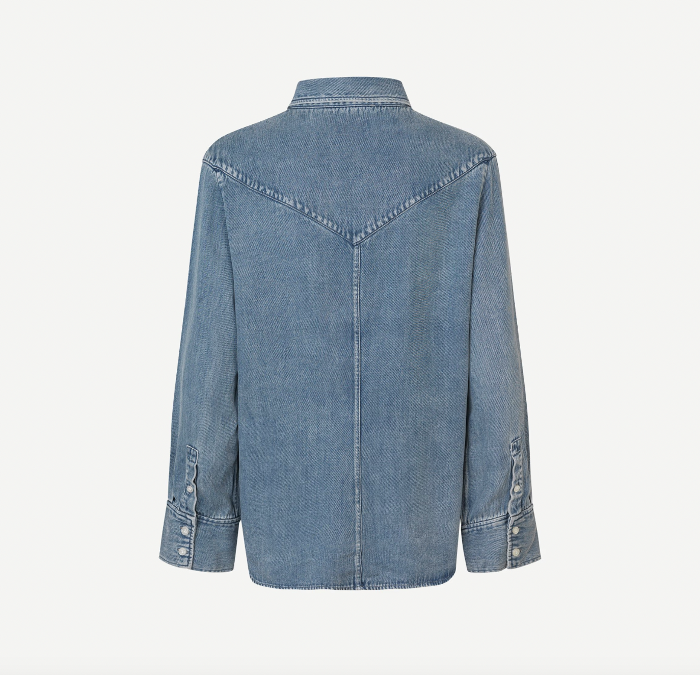 Long-sleeved shirt with a loose fit and dropped shoulders. Button closure on the front and buttoned cuffs. V-shaped yoke seam on the back and front. Washed denim look. Main material made from 100% TENCEL™ Lyocell. This product contains TENCEL™ Lyocell, certified with the EU Ecolabel for textile products (licence no. AT/016/001) for environmental excellence.