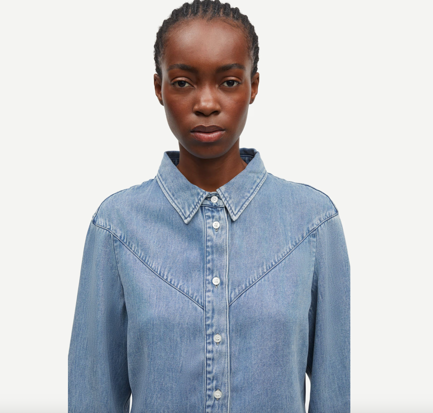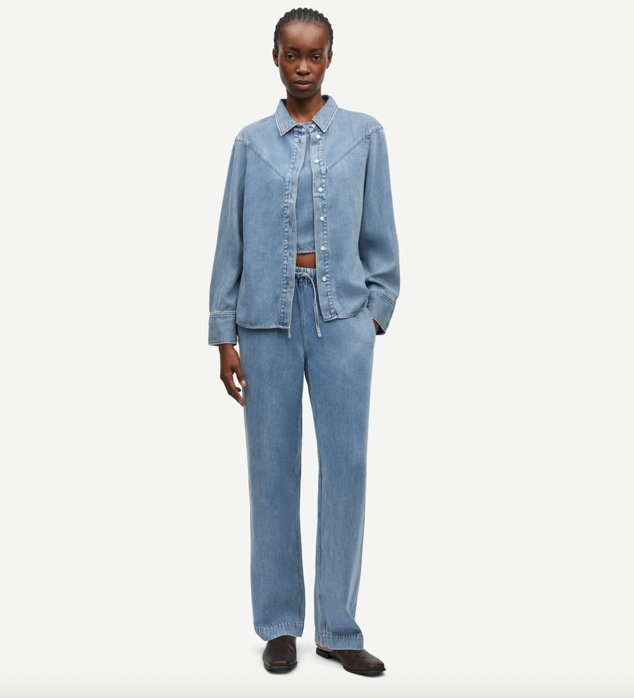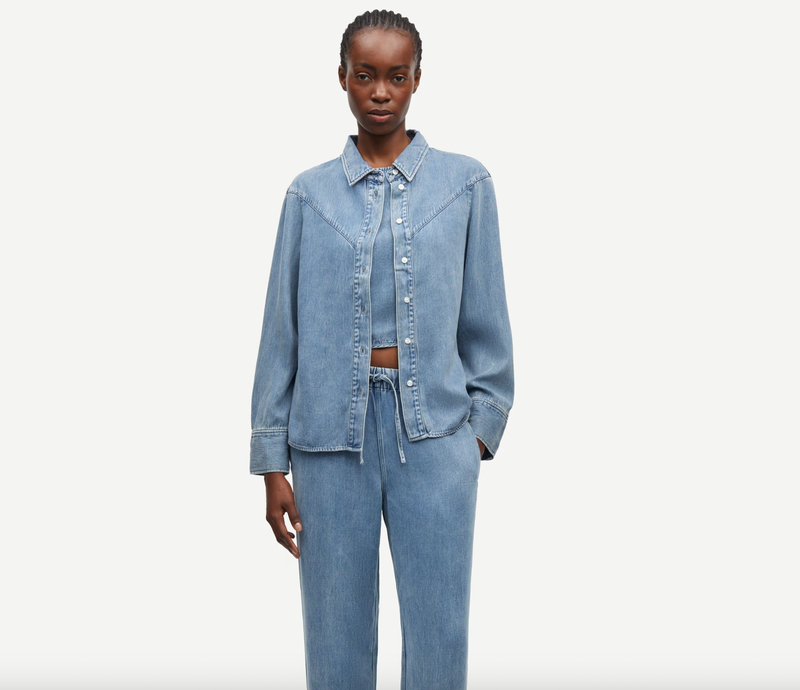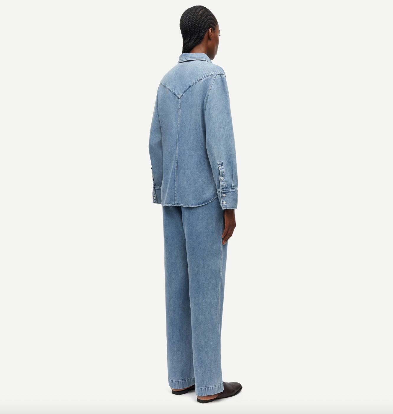Long-sleeved shirt with a loose fit and dropped shoulders. Button closure on the front and buttoned cuffs. V-shaped yoke seam on the back and front. Washed denim look. Main material made from 100% TENCEL™ Lyocell. This product contains TENCEL™ Lyocell, certified with the EU Ecolabel for textile products (licence no. AT/016/001) for environmental excellence.