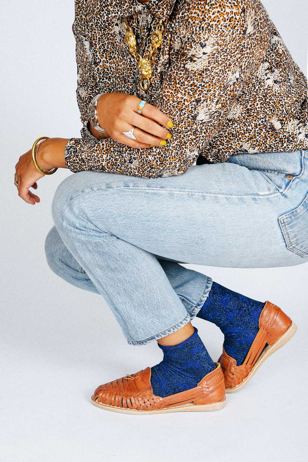 Be the star you are in these shimmer standouts. A lightweight design made in a premium combed cotton, shimmer blend with monotone stars knitted throughout. These shimmer roll tops will spark some attention.