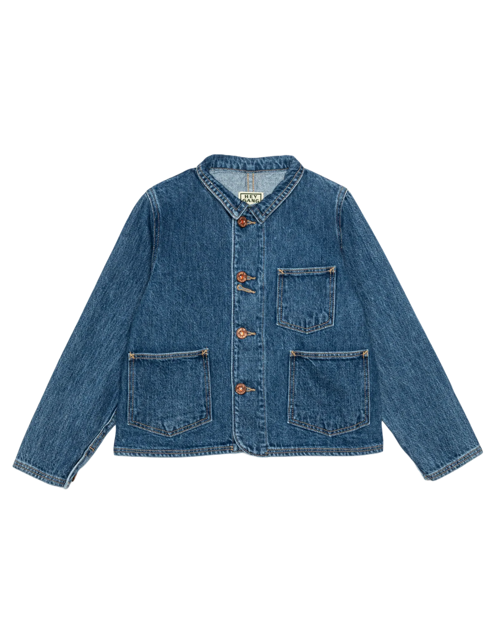 Introducing the Kids Barn Coat in 100% Lightweight Cotton Denim. Enzyme washed for a soft hand and vintage feel. Based on our adult version!